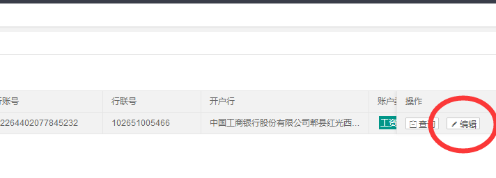 如果核实发现银行卡信息有误或需要完善,请在列表中点击“编辑”按钮,即可对银行卡相关信息进行修改。