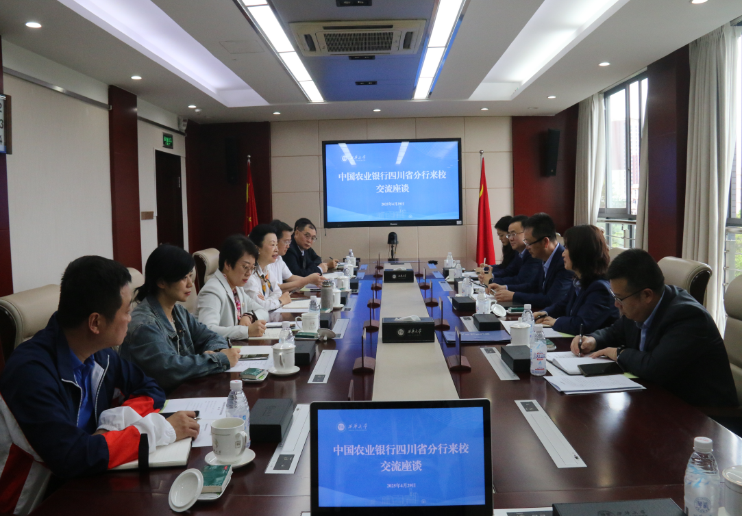 4月29日上午,中国农业银行四川省分行副行长周忠文一行到访ok138cn太阳集团529,与学校领导及相关部门负责人就深化银校合作进行了深入交流。省分行业务部总经理冯丹丽、成都分行副行长陈国华、成都西区支行行长李赵、省分行业务部事业法人科负责人杨姝等随同到访。