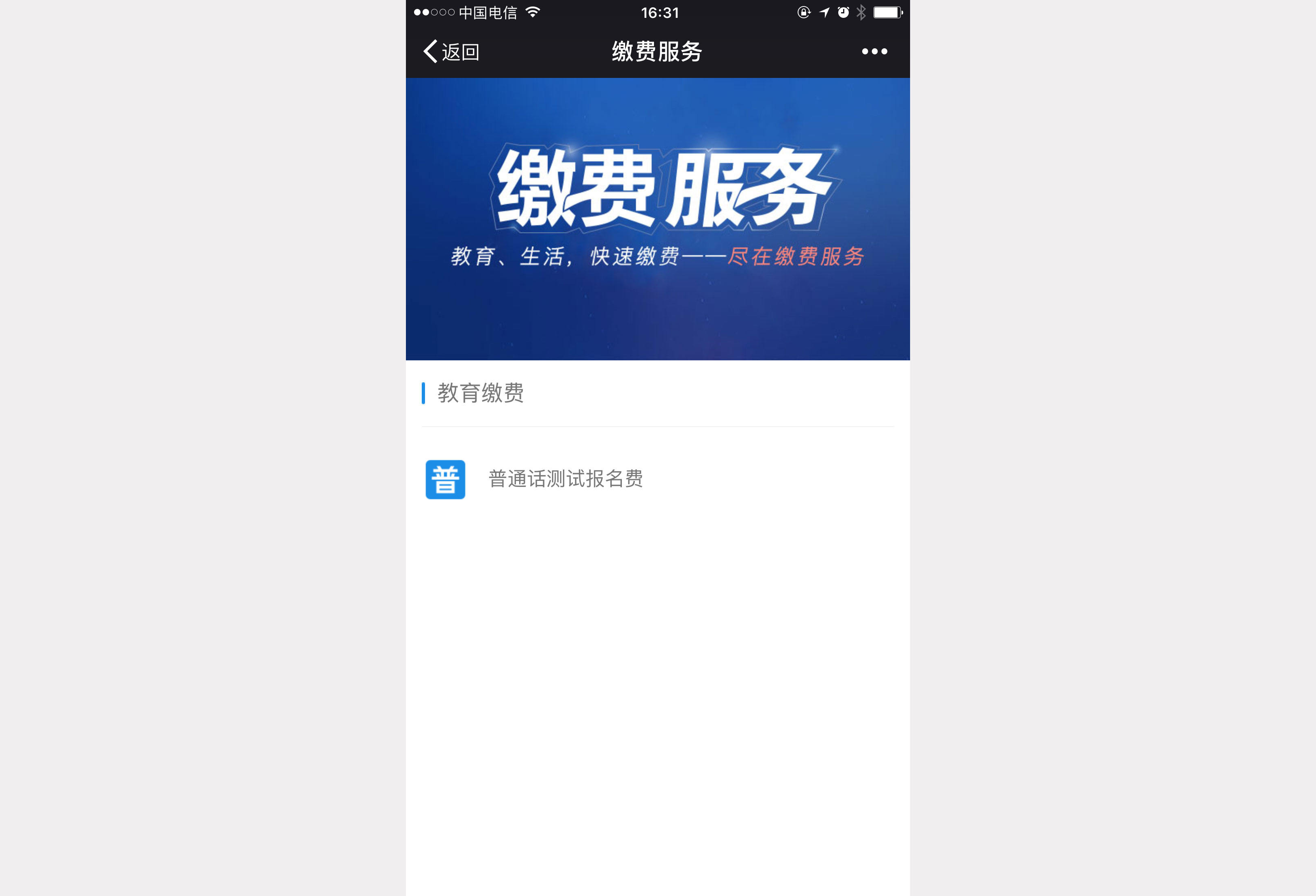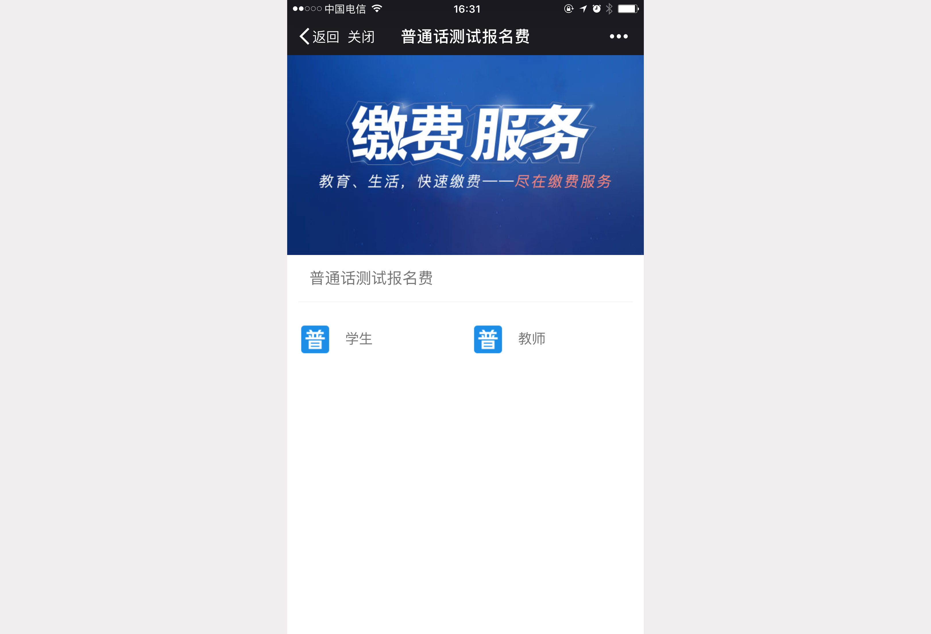 2.1、 进入缴费主界面,点击“普通话测试报名费”