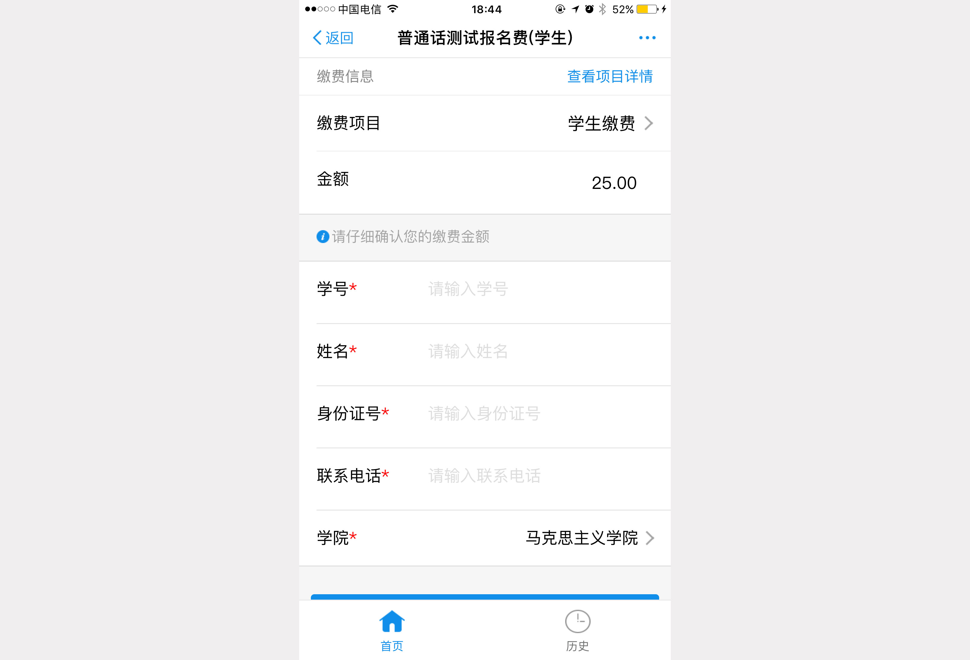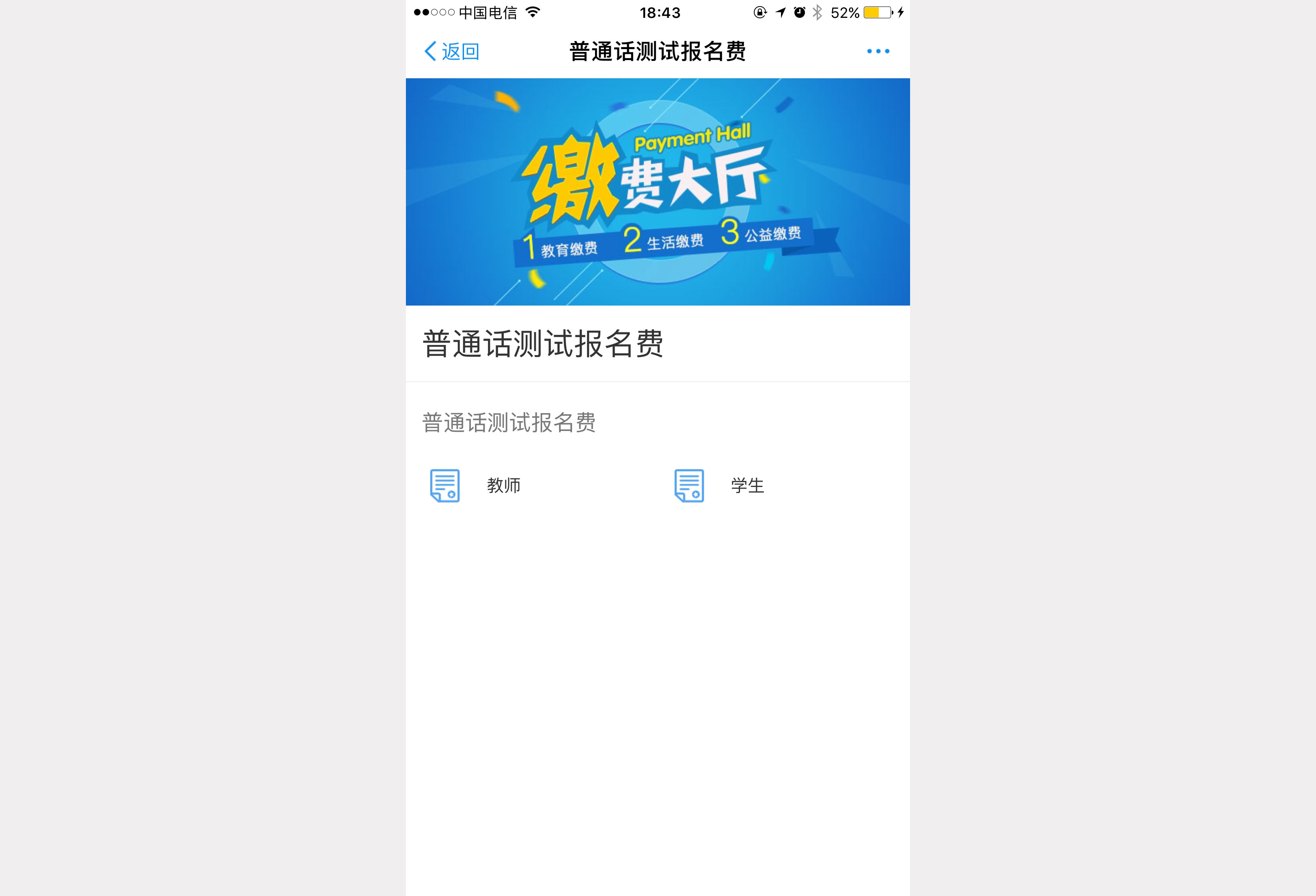 2.1、 进入缴费主界面,点击“普通话测试报名费”